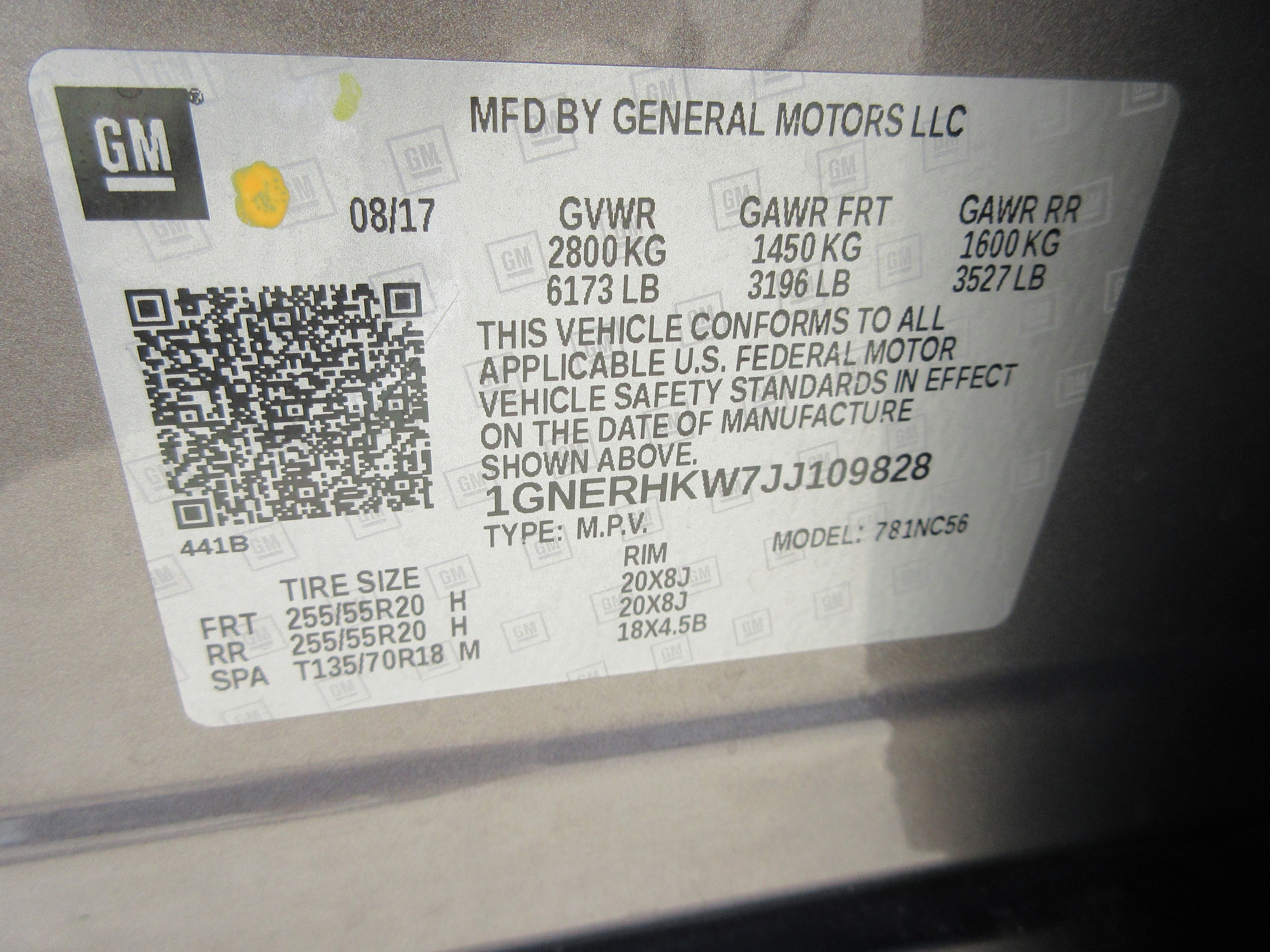 1GNERHKW7JJ109828