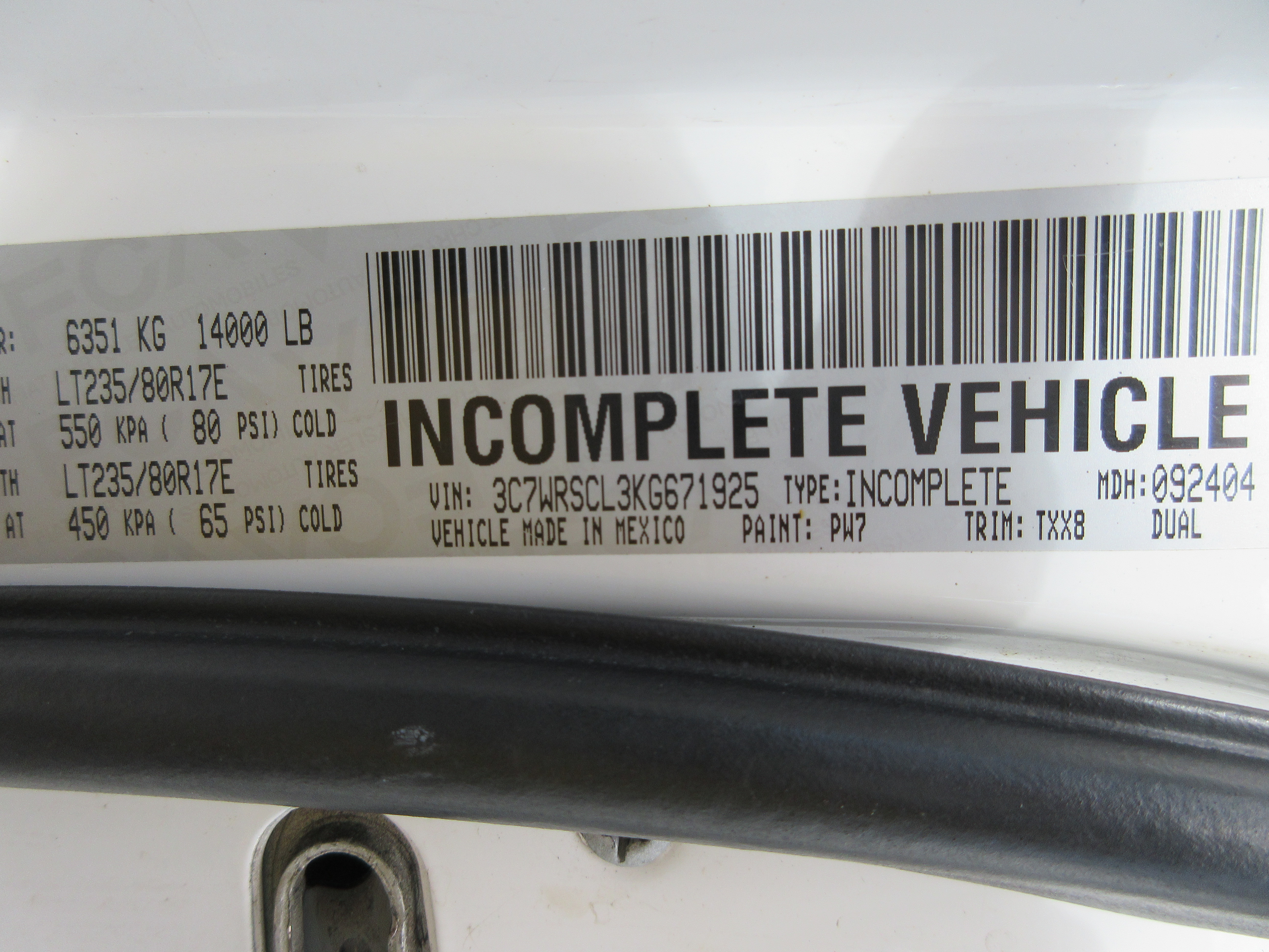 VIN: 3C7WRSCL3KG671925