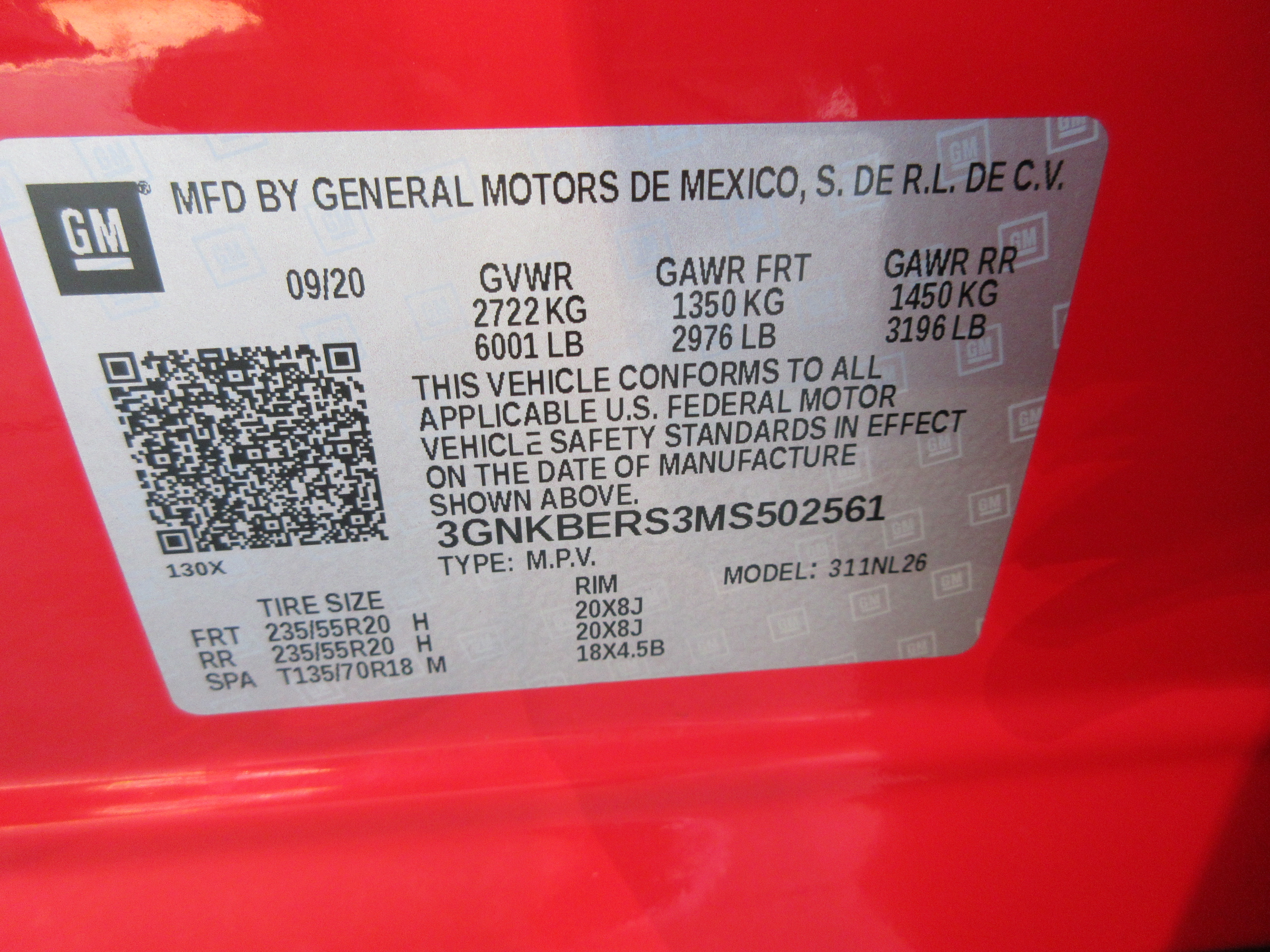 VIN: 3GNKBERS3MS502561