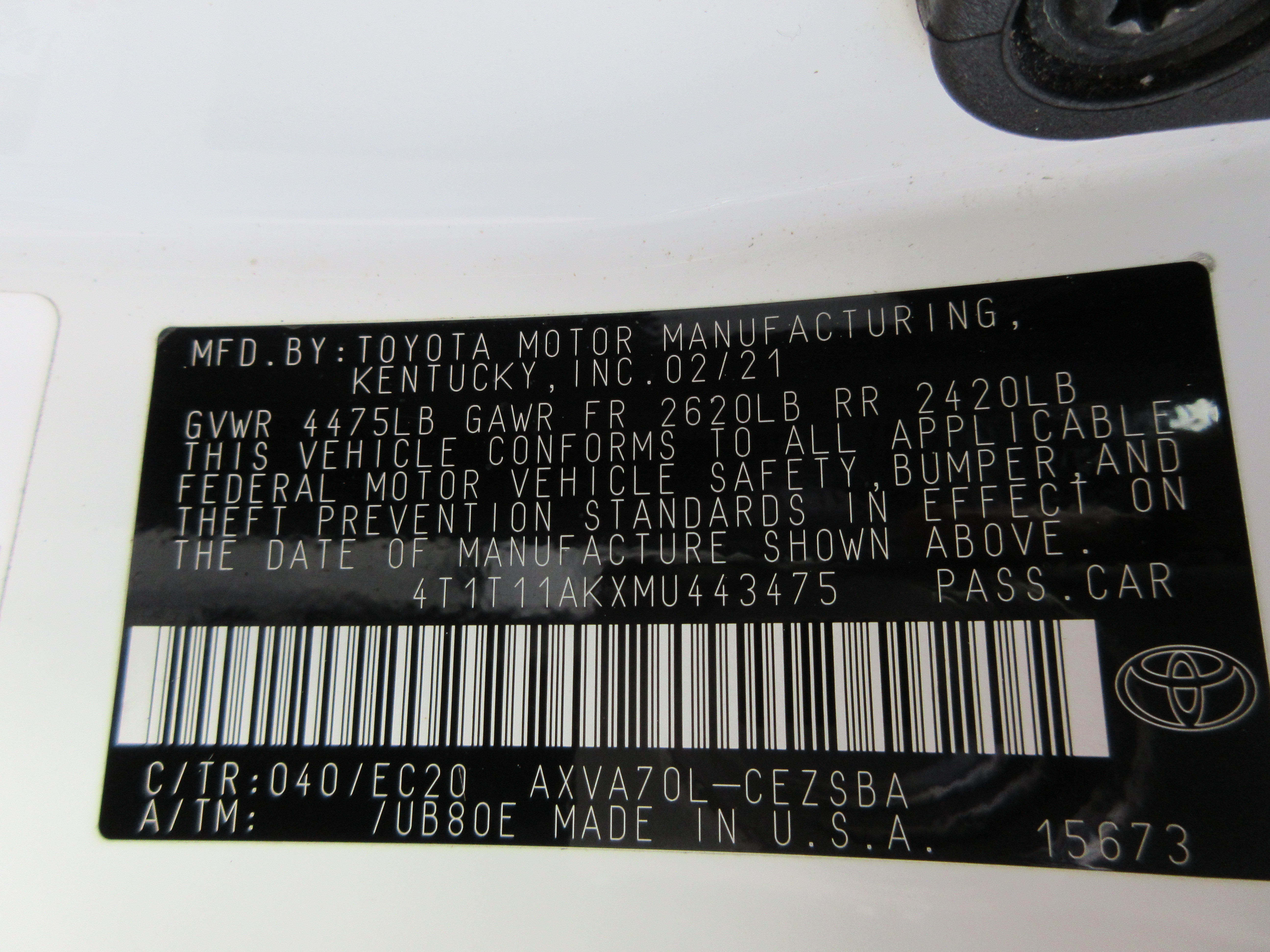 VIN: 4T1T11AKXMU443475